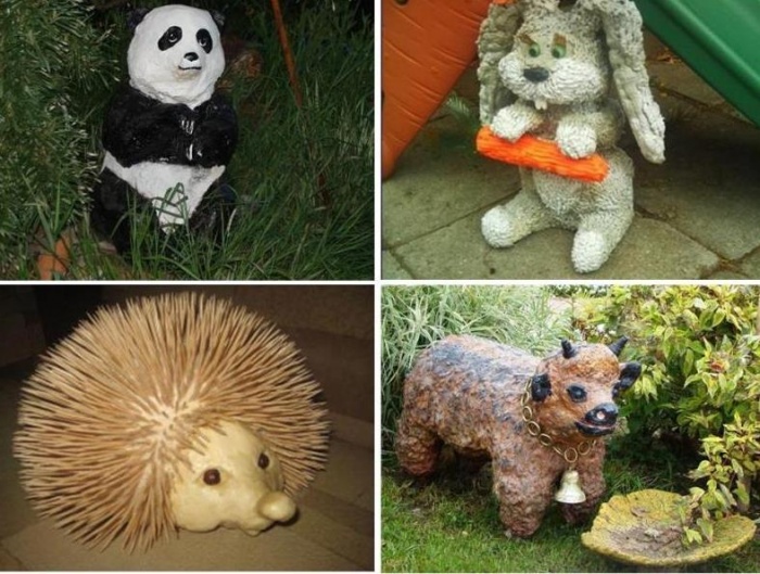 Поверхность этих фигурок тщательно обработана Используя выравнивание высохшей пены, можно смастерить фигуру любого животного и множество других поделок. В таком варианте Ваш труд хорошо защищен от ультрафиолетовых лучей солнца. При этом времени и материалов требуется немало.