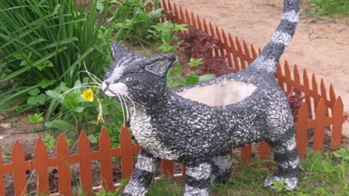 Хорошей идеей является использование скульптуры для выращивания в ней цветов . Но для этого в ее центре вам придется установить определенную емкость, наподобие ведра, жестяной банки или вышеупомянутой пластиковой бутылки.